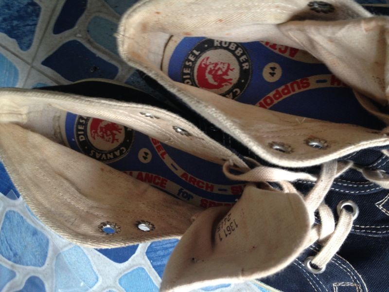 ขาย diesel vintage (rare) เบอร์ 44 สภาพ99% เป็นของเก่าแท้ไม่ใช่ตัวรีโปร ไม่เคยเหยียบพื้นเมืองไทย ใหม่มากๆ ยางนิ่มๆ ผ้ายังแข็งๆ สีน้ำเงินกลม ความยาววัดได้ 29 ซม.