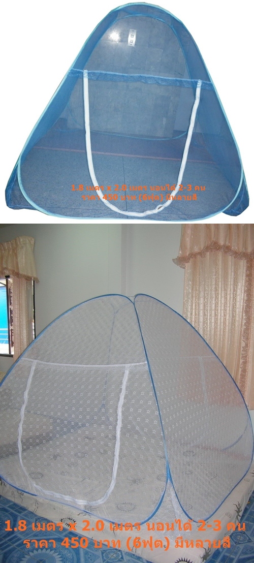 - ขนาดใหญ่ : 2.0 เมตร x 2.0 เมตร นอนได้ 3-4 คน ราคา 550 บาท (7ฟุต) มี 2 ทางเข้า
