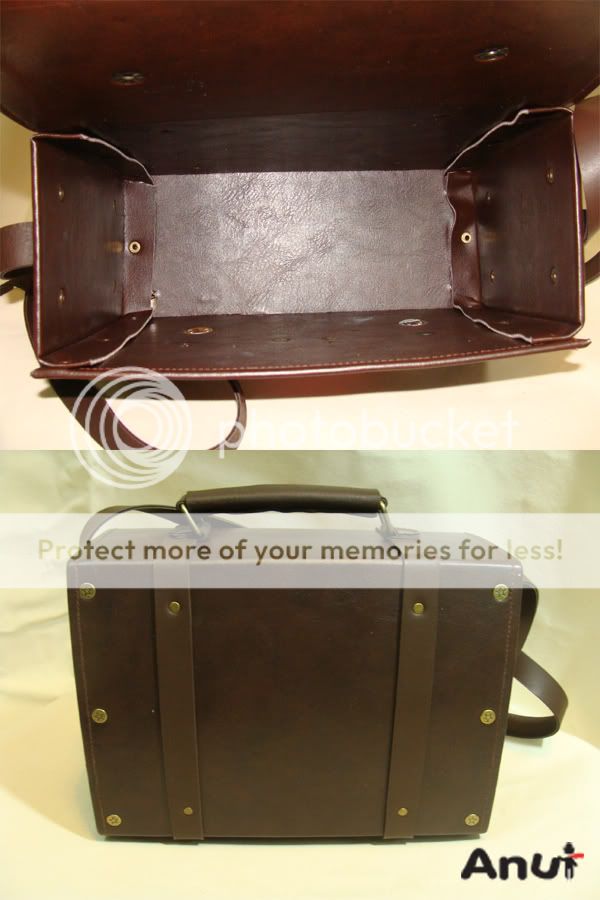 ขนาด 25x17x10 ซ.ม. ด้านในเป็นกระดาษแข็งหุ้มหนังพีวีซี มีสีดำและน้ำตาล ใบละ 590 บาท