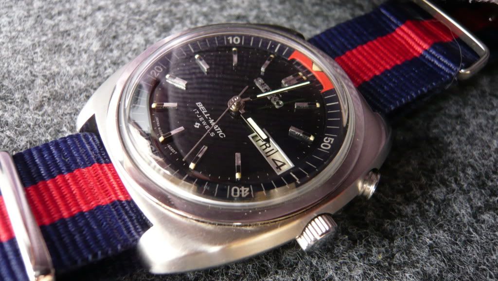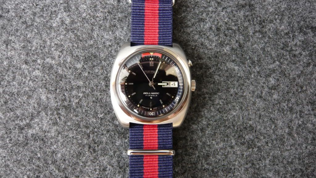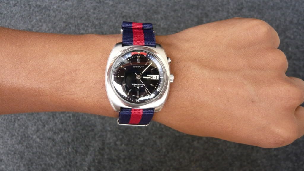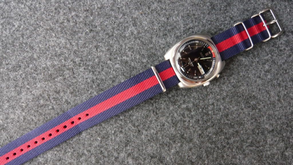 ตัวเรือนสแตนเลส หน้าปัดดำเดิมๆสวยๆ มาพร้อมสายนาโต้