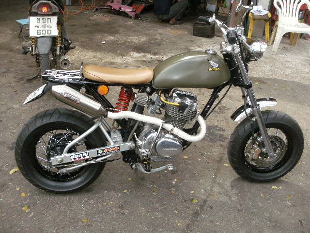 ขอนำเสนอรถแนวแต่งสักคัน เป็นรถที่ทำที่ร้าน เจ้าของวางคอนเซป์แต่งสไตล์ Honda APE ใช้โครงกับเครื่องเป็น Honda JX110 สวิงอาร์มใช้ของคาวาซากิไมโคร ถังน้ำมัน Honda SL คาร์บูใหม่ อธิบายไ้ด้ไม่หมดก็ทำออกมาดังรูป เจ้าของมีโปรเจคใหม่เพิ่งทำตัวโมตาร์ทเครื่องXL200 เสร็จไม่ค่อยได้ขี่เจ้าตัวเล็กก็เลยฝากขาย ได้ไปก็ขี่เท่ได้เลย คุ้มแน่นอน เป็นรถมีเล่มทะเบียนขาดต่อหลายปีครับแต่ไม่มีชุดโอน รถอยู่ลำปาง เปิดขาย 24,000 บาท สนใจสอบถามรายละเอียด วุฒิ 0894346035