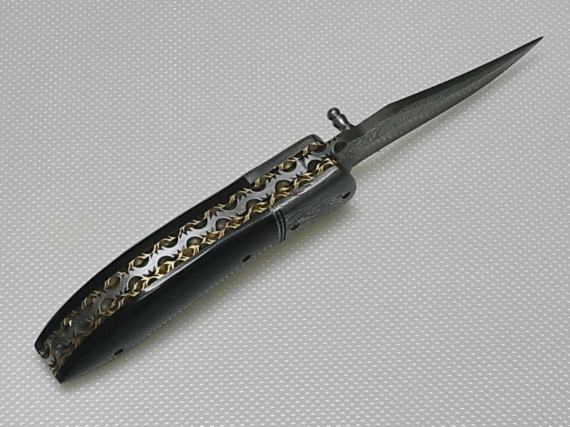 ความยาวรวมประมาณ 7นิ้วใบมีดยาว 3นิ้ว ทำจากเหล็ก2ชนิด 1095+15n25จำนวนมากกว่า200ชั้น ค่าความแข็ง56-58HRC ด้ามจับ ยาวประมาณ 4นิ้วทำจากเหล็กดามัสกัสและเขาควาย ระบบปลดล็อกใบมีดด้านข้าง(liner lock) พร้อมซองหนังแท้ นำเข้ามาจากอังกฤษ MR.MAAN ขายแล้วครับ