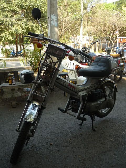 อีกคันในล็อตนี้จากค่าย yamaha เจ้าของสโลแกนสินค้าคุณภาพ เป็นรถในรุ่น yb50 (ในบ้านเราจะเห็นในรุ่น yb100) เครื่องยนต์ 50 ซีซี 2 จังหวะ 4 เกียร์ สภาพเดิมๆ เก่าตามกาลเวลา เครื่องติดเงียบตามสไตล์รถเซียงกง กุญแจ 4 แก๊กมีไฟหรี่ เปิดขาย 13,000 บาท รถอยู่ลำปาง สนใจสอบถามรายละเอียด วุฒิ 089-4346035