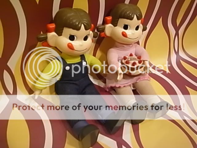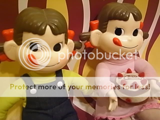 ตุ๊กตา PEKO จัง งานเก่า สภาพสวย 100% ได้มาจากญี่ปุ่น หัวเป็นไฟเบอร์แข็งหมุนได้ ตัวเป็นผ้า ขนาดใหญ่สูง 32 cm ตัวแรกใส่ชุด dress สีชมพูถือเค้ก happy birthday