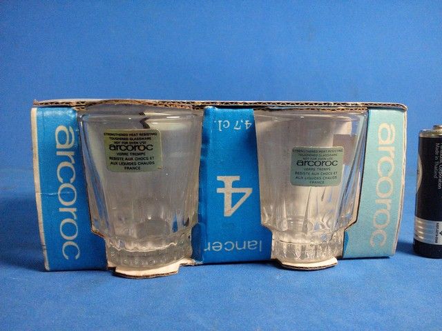 แก้วชอต แบรนด์ arcoroc Made In France แพ็ค4 งานเก่าสภาพกล่อง ราคา 450-.(+ส่ง50)