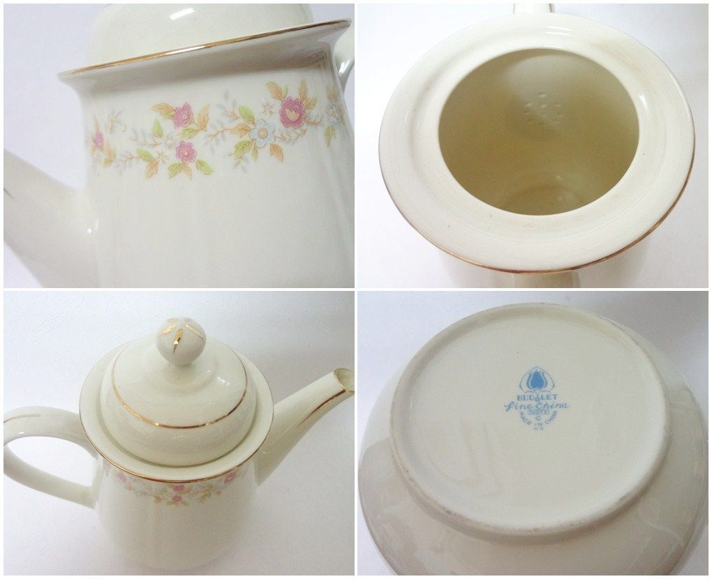 1388. กากาแฟ Budlet Fine China Ivory H.D สีงาช้าง ความสูงจากก้นถึงปลายที่จับบนฝา 20 cm ลายขอบทองชัด สภาพดีไม่มีรอยแตกร้าว ฝามีลิ้นกันฝาหล่น มีลายดอกไม้รอบกา ราคา 500บาทรวมส่ง ขายแล้วครับ