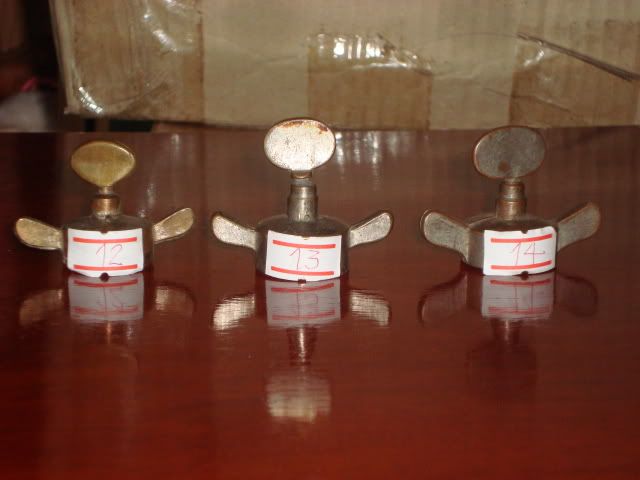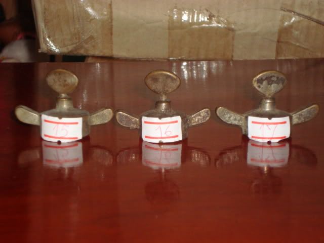 ฝาปิดน้ำมันตะเกียงเจ้าพายุเยอรมัน มี 3 แบบแต่ละแบบไม่เหมือนกันดูเอาเองนะค่ะถูกใจแบบไหน เลือกตามหมายเลขที่โดนใจได้เลย บางอันสีทองเหลือง บางอันสีเงิน มี 21 อัน ขายอันละ 150 ส่ง 30 (เบอร์ 1-5 ขายแล้วค่ะ)