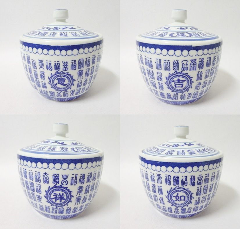 1422. โถลายตัวอักษรจีนแบบโบราณรอบโถ อวยพรให้โชคดี สมปรารถนา บนฝาอวยพรให้ร่ำรวย สูง 8.5 cm ปากกว้าง 11cm สภาพสวยครับ 600บาทรวมส่ง