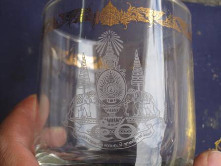แก้วชุด ฉลองศิริราชสมบัติ 50 ปี พ่นทราย ลงทอง งานสวยมาก ขาย 750 บาท ค่าส่ง 50 บาท