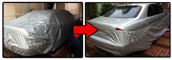 วิธี คือ ซื้อยางรถสิบล้อมา 3 เส้น ที่ยังไม่ได้สูบ สอดไว้ใต้ท้องรถ แล้วสูบลมเข้าไป ก่อนสูบควรผูกเชือกตำแหน่งต่างๆ ที่จะทำการผูกยึดรถก่อน แล้วรถจะปลอดภัยในช่วงน้ำท่วม
