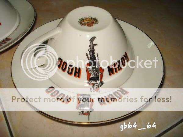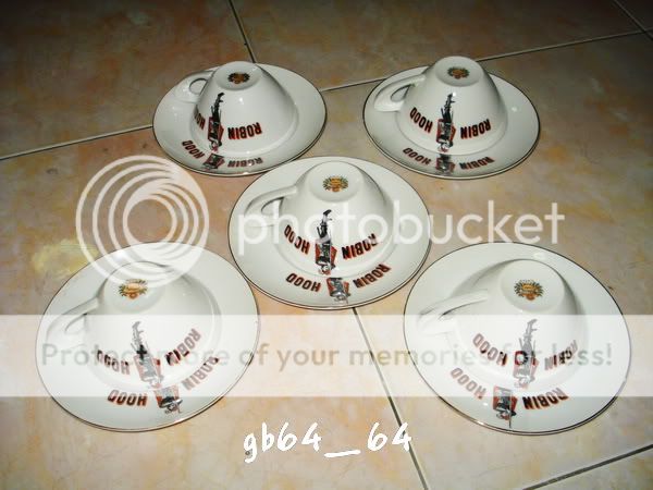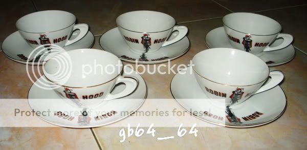 ขายชุดถ้วย + จานรอง นม โรบินฮู้ด สภาพสวยไม่ผ่านการใช้งาน