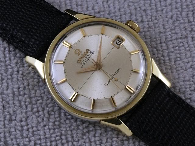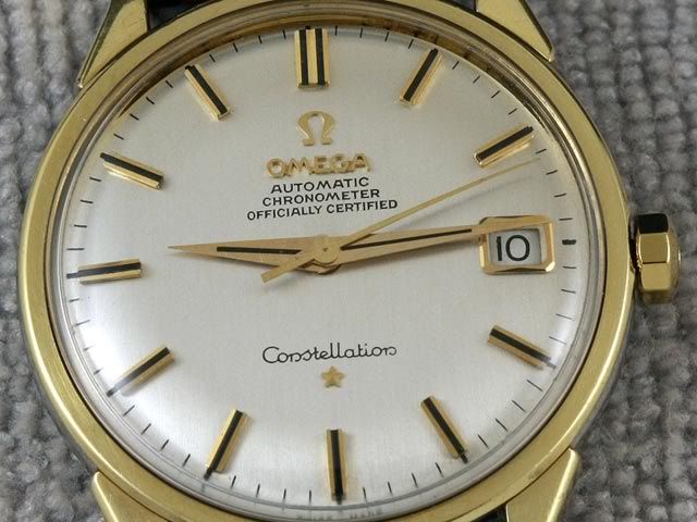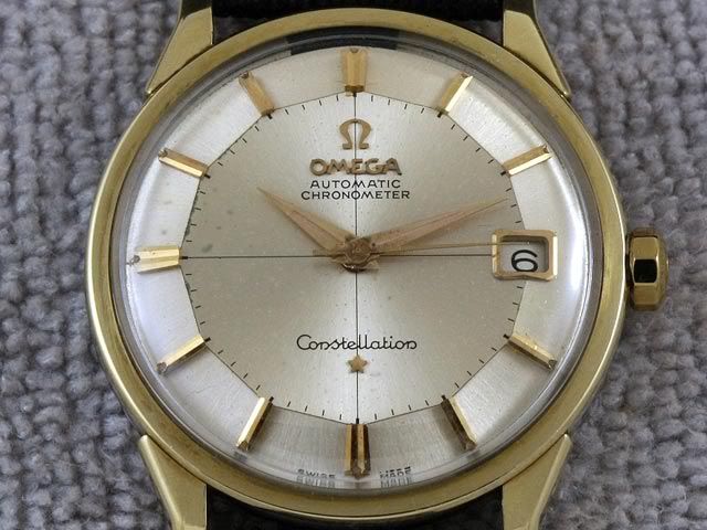 หน้าปัด..... ของแท้ๆ เดิมๆ สีขาวซิลเวอร์ รุ่นหน้าโค้งยอดนิยม หลักขีดบอกชั่วโมงเป็นขีดทองสอดดำ สภาพสวยงามมากๆ (เป็นหน้าปัดแท้ๆ ของเดิมๆจากโรงงาน OMEGA ไม่มีการเขียนเพิ่มเติมแต่งหรือทำหน้าใหม่),