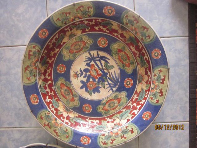 จานโบราณลายดอกไม้ ไม่มีแตกไม่มีร้าว ขนาดกว้าง 47 ซม.
