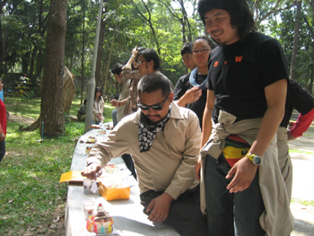 แต่งหน้าเค้กเสร็จก็ช่วยกันกินหน่อย....... ( ถ่ายรูปในงาน เชียงใหม่แรลลี่ หยุดโลกร้อน ... )