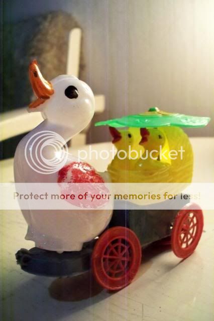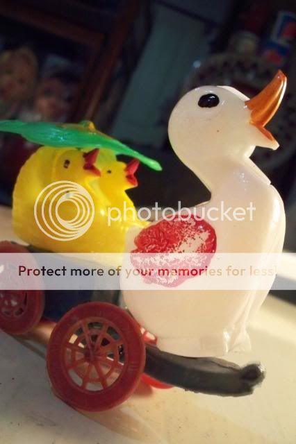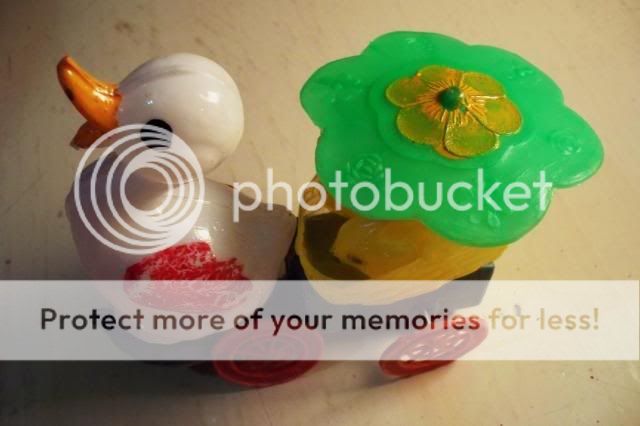 แม่เป็ดพลาสติกโปร่ง พาลูกน้อยใส่ตะกร้าออกเที่ยว มีล้อขับเคลื่อนระบบ4wheel drive เวลาเข็นลากจูงร่มบนหัวลูกน้อยจะกะดกขึ้นลง น่ารักอย่าบอกใคร ;D ชุดละ 300บาท ส่ง30