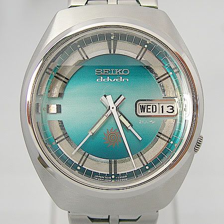 Seiko ADVAN เครื่องออโต้ 7019 ทับทิม 21 เม็ด ขนาด 36 มม. ปี1974 สวยกริ๊บ ในซีรี่ย์ advan ตัวนี้หายากเลยทีเดียว สภาพสมบูรณ์ หน้าปัดสีฟ้าสไลด์ กระจกเจียรนัยใหม่เอี่ยมไม่มีริ้วรอย ตัวเรือนสวยกริ๊บ สายเหล็กแท้ตรงรุ่น บัคเคิ่ลตี advan