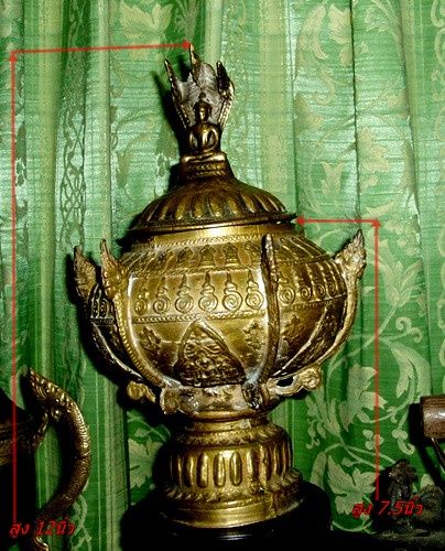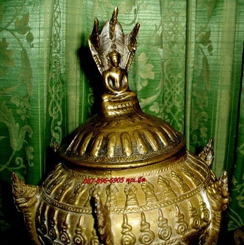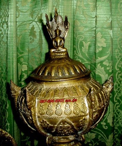 (ขายแล้ว) ขันน้ำมนต์นาคปรคโบราณ ใช้ทำน้ำมนต์ในพิธีกรรมต่างๆ สภาพสวยสมบูรณ์ ผ่านการทำความสอาดก่อนถ่ายรูป ขนาดความสูง 12นิ้ว(รวมฝา) เส้นผ่าศูนย์กลาง 4+นิ้ว รอบวงนอกตรงใหญ่สุด 22+นิ้ว นน.1,800g ขาย SALE บาท รวมส่ง โทร: 087-896-6905