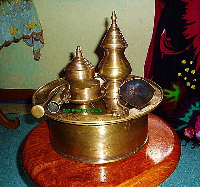 ขายแล้ว เชี่ยนหมากทองเหลืองโบราณ อายุหลายสิบปี สภาพสวยงามและสมบูรณ์ อุปกรณ์ครบตามในรูปครับ ไม่มีตำหนิใดๆทั้งสิ้น ขนาดเส้นผ่าศูนย์กลาง 9นิ้ว สูง 4นิ้ว ขาย SALE บาท รวมส่ง