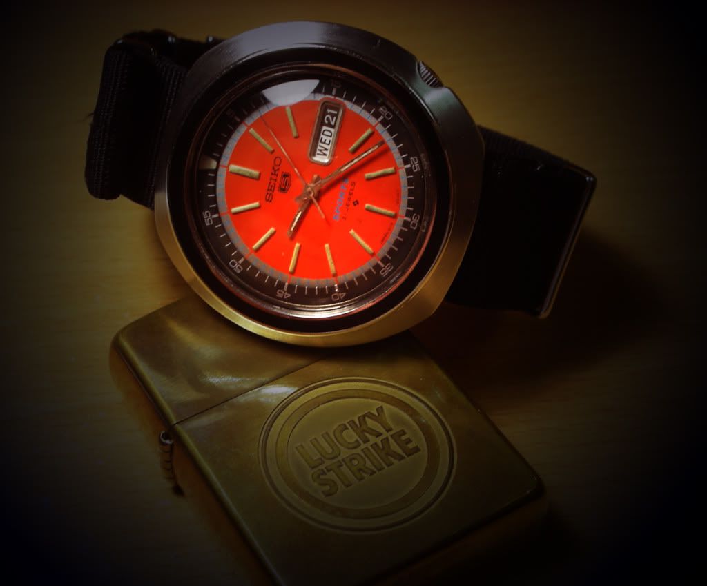 สายเปลี่ยนมาใช้สายนาโต้ 20 มิล ตอนใส่ลำบากหน่อย เพราะขานาฬิกามัน 19 มิล