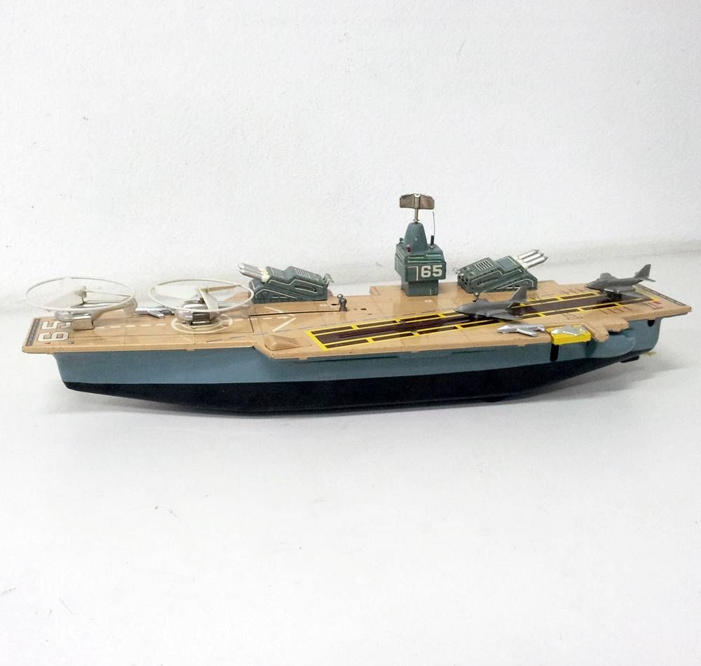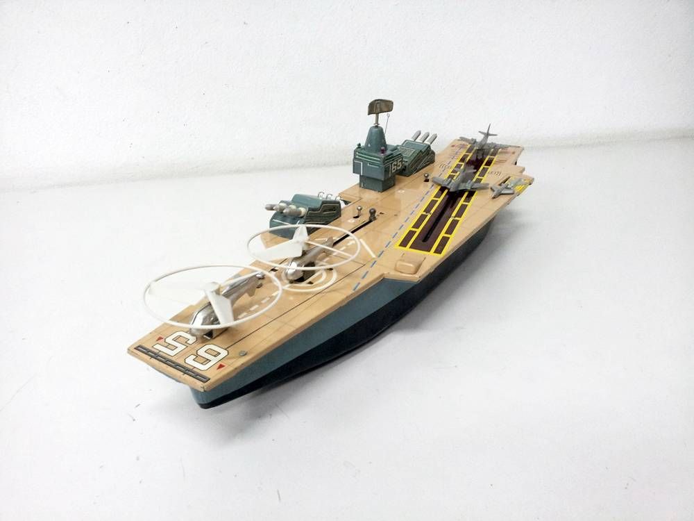 เป็นเรือสังกะสีตัวหายากตัวหนึ่งของๆเล่นจำพวกเรือรบ ตัวเรือทำจากสังกะสีทั้งหมด ความยาว 21 นิ้ว