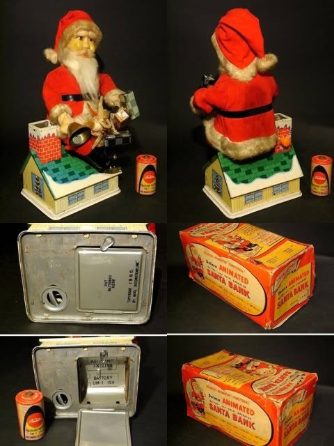 ขาย ของเก่าสังกะสี ผสม เซลลูลอยด์ ซานตาครอส santa claus tintoys celluloid งานปี 1955-1960 เล่นได้ทุกระบบ สูง 28 เซนติเมตร ราคา 5500