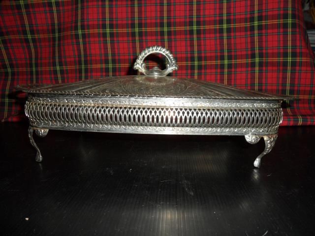 [B]244. ถาดโลหะชุบเงิน งาน ENGLAND หรูหราดูดี ฐานเป็นกระจกหนา ยาว 11.5 นิ้ว กว้าง 7.5 นิ้ว ขายแล้วค่ะ