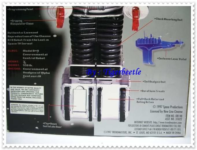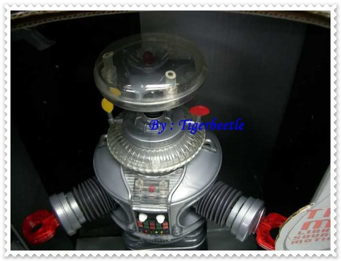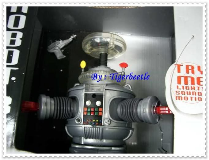 เดินได้ บนหัวมีไฟติด แขนยืดหดได้ กดปุ่มที่หน้าอก (มี 2 ปุ่ม สีขาว) จะมีเสียงพูด