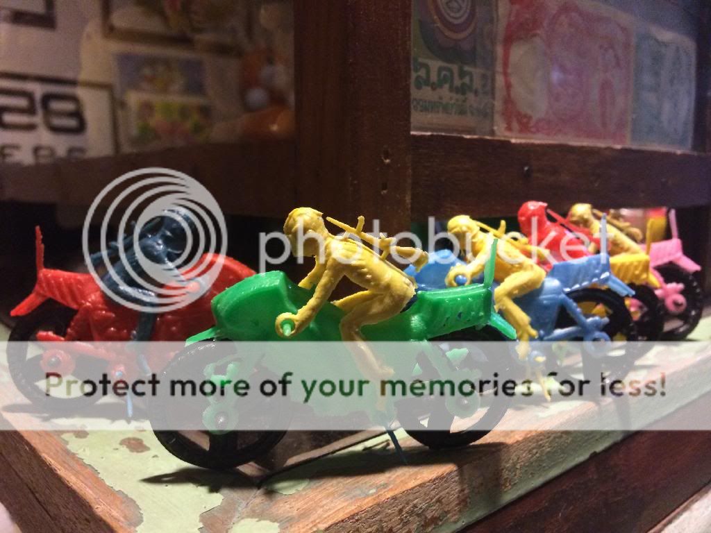 เเมงกะไซด์พร้อมคนขับ ของเล่นพลาสติกงานเก่า คนขับยกตัวขึ้นมาเล่นท่าผาดโผนได้ 55 มีหลายสี คันละ100ส่ง30