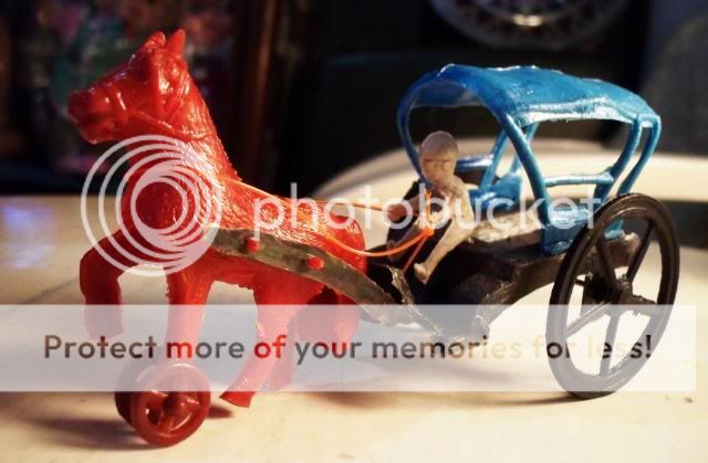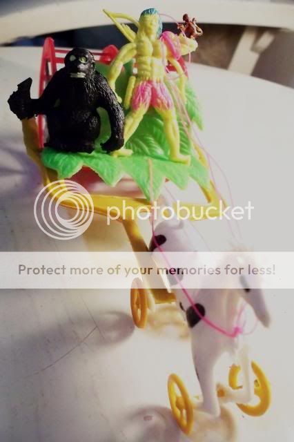 รถม้าลากจูงพลาสติกเก่ามีล้อวิ่งได้ ตัวใหญ่ มีคิงคองและนายพรานพร้อมลิงจ๋อนั่งบนไหล่นายพรานเป็น พาหนะ ล้อหลังใหญ่ๆมีลูกกระพรวนพลาสติกแข็งหุ้มลูกเบ้อเริ่ ม ส่งเสียงกรุ๊งกริ๊งกังวานทุกคราเมื่อลากจูง สวยคุ้มค่ามาในแพ็คเดิมๆ 350บาท ส่ง30