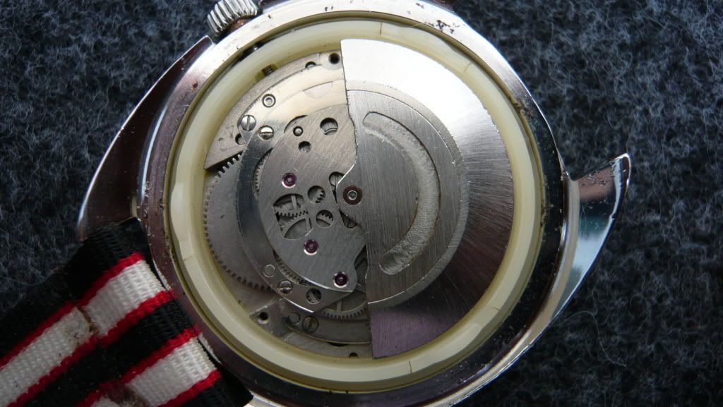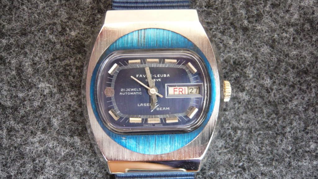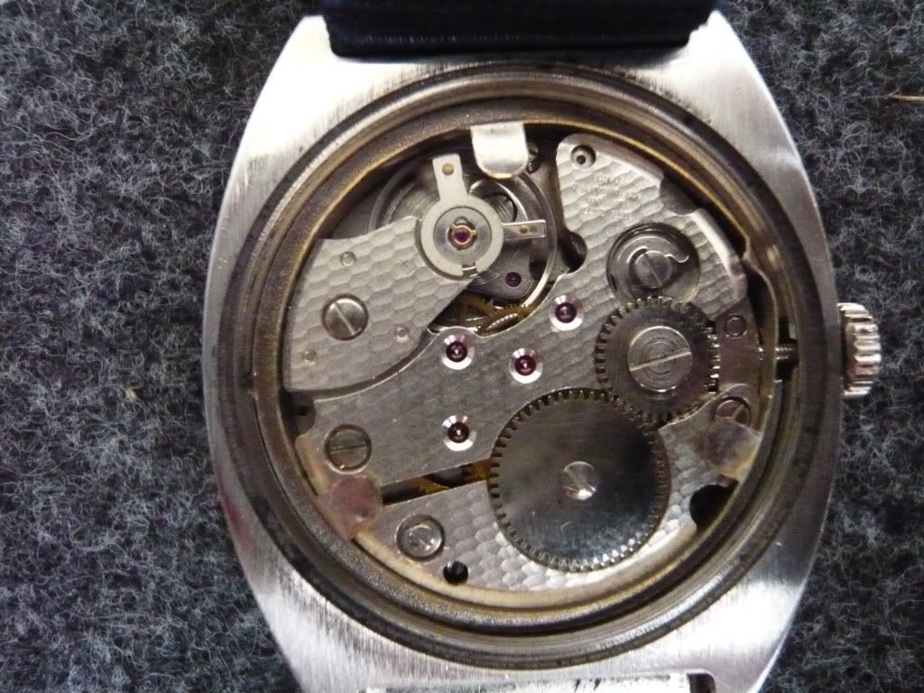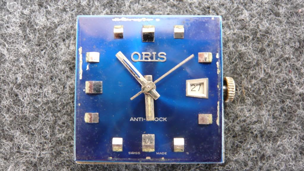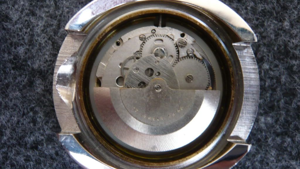 ตัวเรือนชุบเงิน(ชุบใหม่) หน้าปัดนําเงิน(มีตำหนิตามอายุ) ล้างเครื่องแล้ว