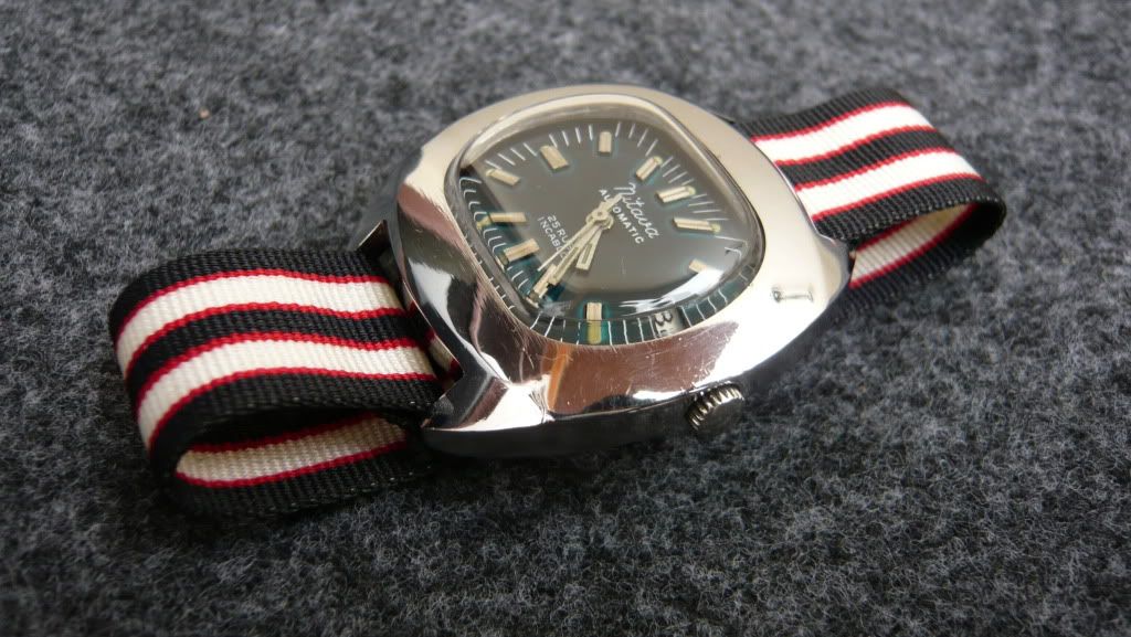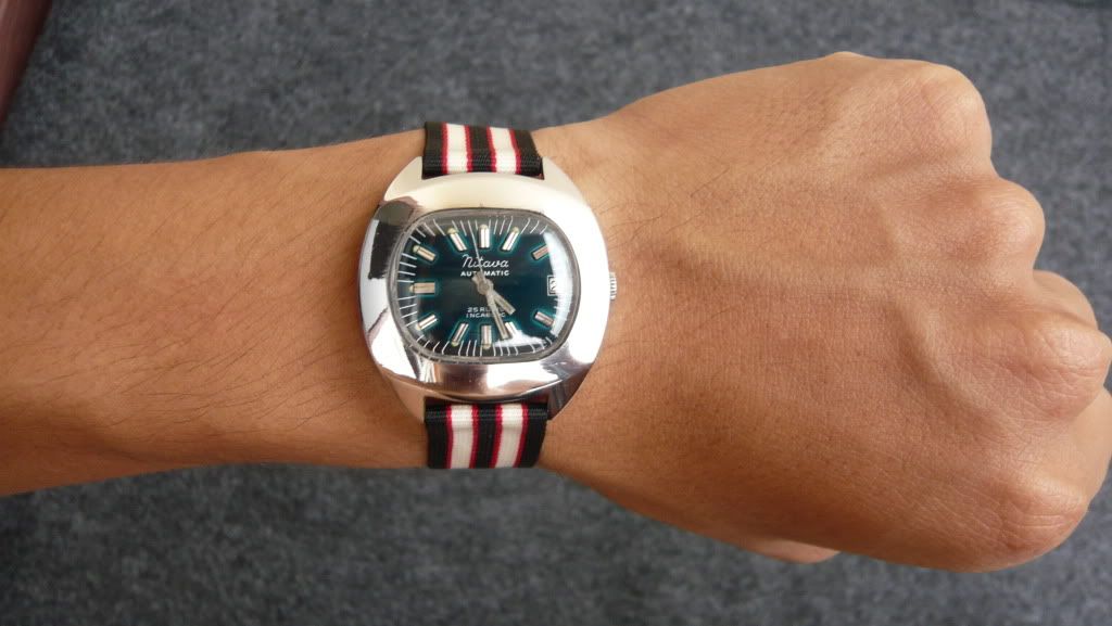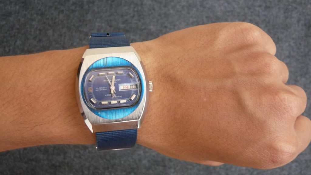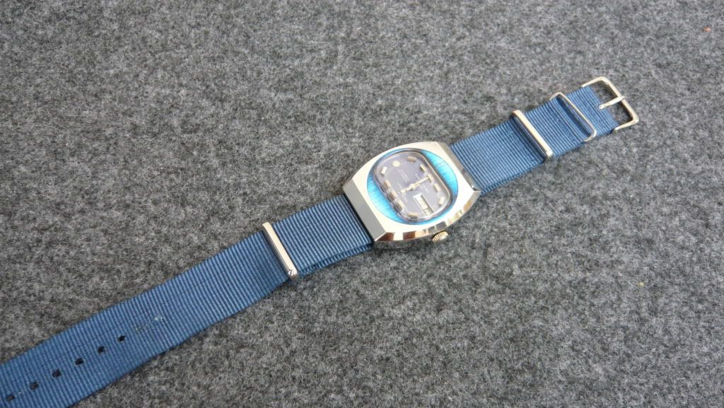 ตัวเรือนสแตนเลส มาพร้อมสายNATO หน้าปัดสีนําเงิน สภาพNOS