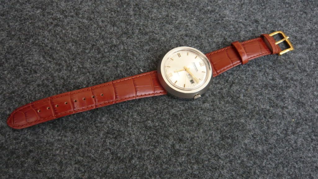 ตัวเรือนสแตนเลส ทรงUFO หน้าปัดบอน์ท สภาพNOS