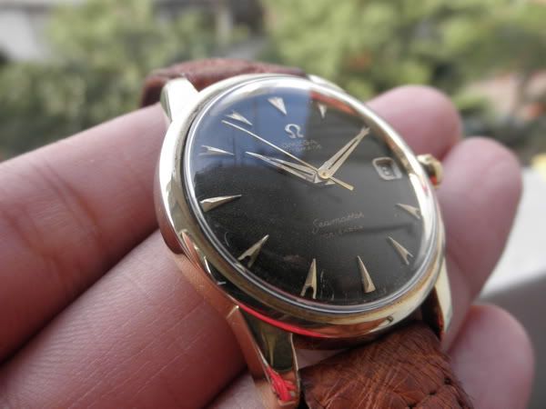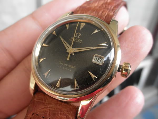 Omega Seamaster Auto เครื่อง 501 หลักว่าว ขานก ตรงรุ่นสมบูรณ์สุด ได้กลิ่นไอ Vintage คอสะสมไม่ควรพลาดเรือนนี้ด้วยประการทั้งปวง เรือนนี้ผลิตเมื่อปี 1956 ( 55 ปี ) หน้าปัดสีดำเดิม ๆ ขนาด 34 มม. ตัวเรือนและขาทองหุ้มหนา ๆ เงางับสวยงามมาก ๆ เดินดี เดินตรงสภาพโดยรวม สวยงามมาก เท่ห์ ดูดี มีภูมิฐาน พร้อมสวมใส่ รับประกันครับ