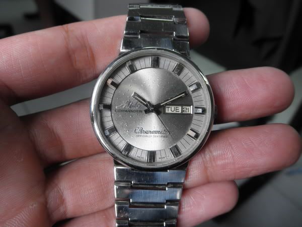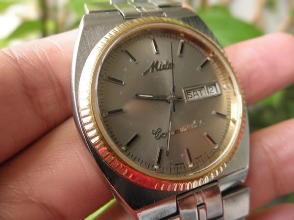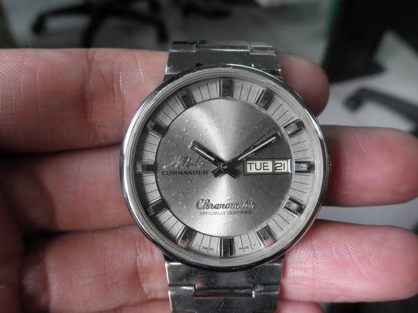 MIDO COMMANDER หน้าเปียนโน ขนาด 36 มม.ไม่รวมเม็ดมะยม หน้าปัดมีผดขึ้นเล็กน้อยบ่งบอกถึงความเก่าหลักเข็ม เม็ดมะยม สายเดิม ๆ ตรงรุ่น ตัวเรือนสวยใสไม่ผุ เครื่อง ETA 2837 Chronometer เดินตรงแป๊ะ ด้วยความถี่ละเอียดยิบ 36000 รอบ มองดูเข็มวินาทีกระดิกนี่เพลินเลย เดินนิ่มจริง ๆ ล้างเครื่องมาเรียบร้อย สภาพพร้อมสวมใส่ รับประกันครับ