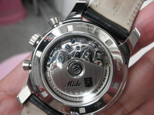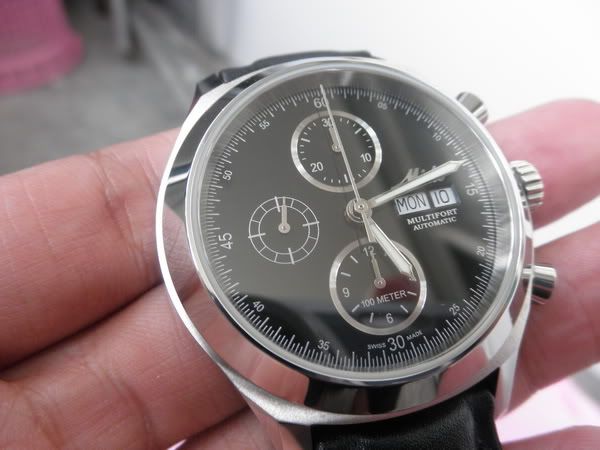 Mido Multifort Automatic Chronograph ขนาดหน้าปัด 43 มม.ไม่รวมเม็ดมะยมกระจก CRYSTAL SAPPHIRE เครื่อง 7750 เครื่องตัวนี้ขึ้นชื่อในเรื่อง เดินดี อึด ทน ไม่งอแงจึงได้รับเกียรติให้อยู่ในนาฬิกาชั้นนำระดับส ูงเช่น Omega,Oris, IWC, BREITLING และอีกหลายยี่ห้อล้วนแล้วแต่ราคาแพง ๆ ทั้งนั้น ด้านหลังเปลือยโชว์กลไกสวยงามมาก มาพร้อมกล่องและใบรับประกันลงวันที่ 15/11/2008 ตัวนี้ในช้อปยังมีขายอยู่ที่ 62,000 บาท ส่วนลด 15% ก็ต้องมีเงิน 52,700 บาท ถึงจะได้ครอบครอง เรือนนี้สภาพมือ 1 แต่ขายราคามือ 2 ตีไปต่ำ ๆ สัก 95 % ส่ง ems ให้ทั่วประเทศครับ