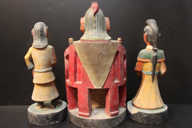 Size:  42.2 KBไม้แกะ เป็นเทพเจ้าจีน ของเก่าครับ เป็นเทพเจ้าสายฟ้า เวลาแสดงอิทธิฤทธิ์ จะเบิกเนตรที่สาม เขียนสีปิดทองเดิม ดูทรงพลัง พร้อมองครักษ์ถือดาบ กับนางฟ้าถือตราประทับยศ ไม้แกะมีกลิ่นหอม เก่าถึงยุคครับ ประมาณช่วงปลายชิง เสียดายที่องครักษ์ที่ถือดาบหมวกกับผมแหว่งๆไปบ้าง แต่ทุกอย่างสภาพเดิมๆหมดครับ ขนาดองค์กลางสูงถึง33ซมเลยทีเดียว ฐานเส้นผ่านศูนย์กลาง 17.5 ซม และนางฟ้ากับองครักษ์สูงประมาณ29ซมครับ ราคาทั้งชุด9500บาทครับส่งฟรีทั่วไทยจ๊ะ