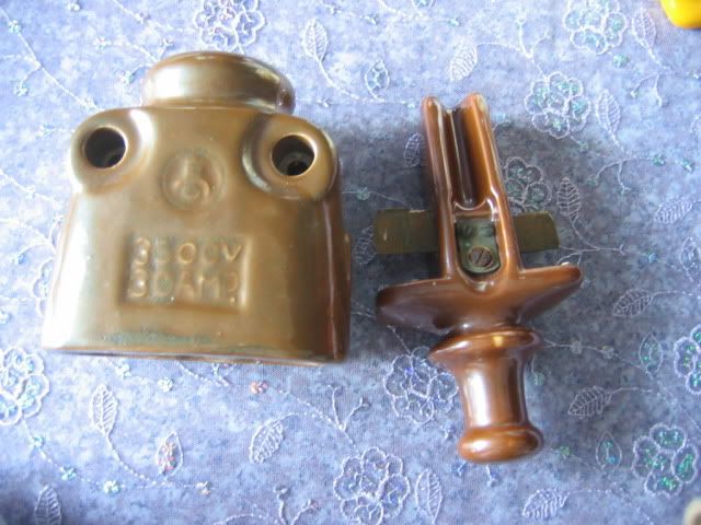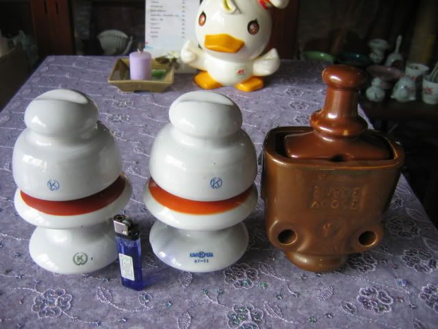 ลูกถ้วยกระเบื้องสำหรับไฟฟ้า ของเก่าญี่ปุ่นยังไม่ใช้งาน น้ำเคลือบสวยมีบิ่นนิดหน่อย มีสี่ชิ้น ใช้สำหรับต่อไฟเข้าบ้านสุดแจ่ม ขายยกชุด ราคา 1000 ส่ง 150 ครับ