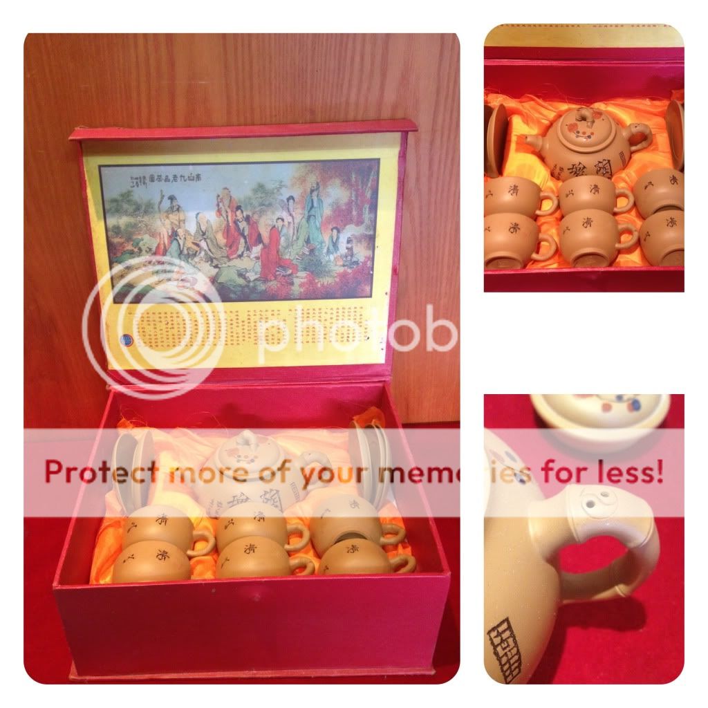 ชุดกาดินเผาระดับเซียน มากับกล่องสวยงามมีตราประทับ แต่จานรองมาแค่ 5 แต่แก้วมี 6 ใบครับ สมบูรณ์ไม่บิ่นไม่ร้าว ไม่ผ่านการใช้งาน ขาย 750 ครับผม