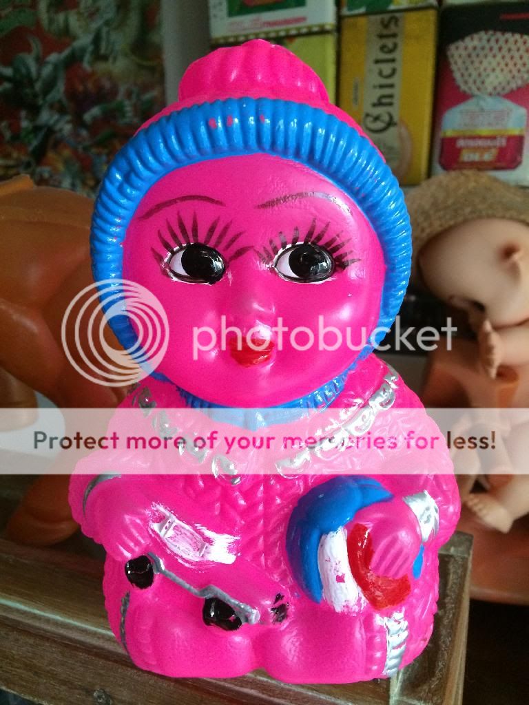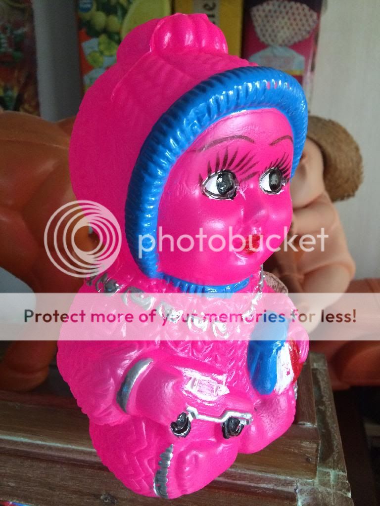 ออมสินเด็กพลาสติกโปร่งลงสี งานเก่าเก็บ ที่หยอดเหรียญยังไม่ได้เจาะ สูง10นิ้ว 750ส่ง30