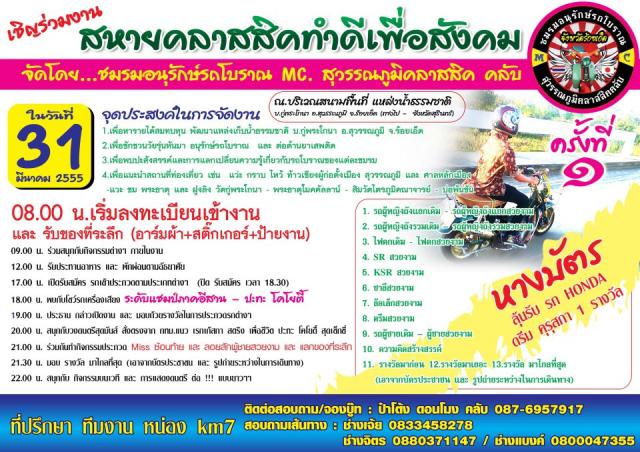จัดโดย...ชมรมอนุรักษ์รถโบราณ mc. สุวรรณภูมิคลาสสิค คลับ จ.ร้อยเอ็ด
