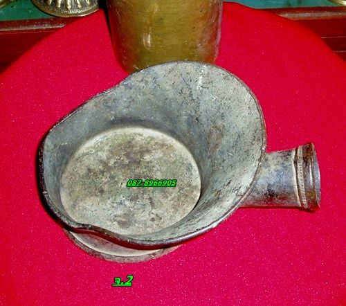 กระบอกทำขนมจีนทองเหลืองสมัยโบราณ (กระบอกที่1.) งานศิลปะของชาวนครศรีฯ สภาพเดิมๆดิบๆ อุปกรณ์ทุกอย่างครบนำไปใช้งานได้เลยหรือตั้งโชว์ก็สว ยคลาสสิค ทองเหลืองหนักๆ ขนาดสูง 9.5นิ้ว เส้นผ่าศูนณ์กลาง 3.6นิ้ว นน. 6Kg g ขาย 8,950 บาท ค่าส่งตามจริง(หนักครับ) โทร: 087-896-6905 และ 092-298-6997