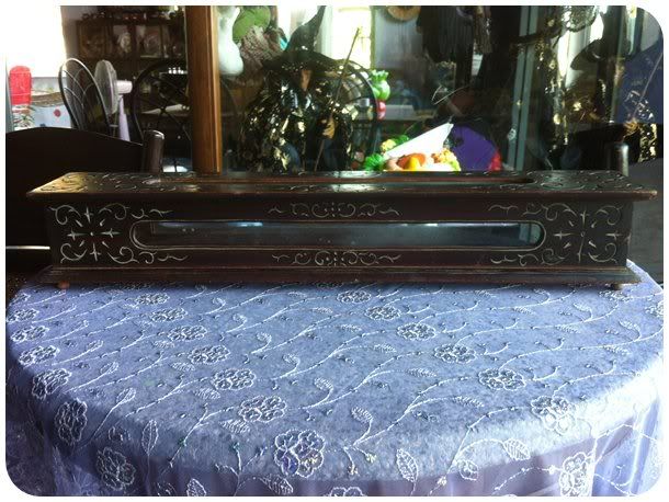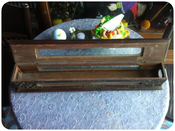 กล่องใส่ตำราใบลานหรือเปล่าแต่เก่ามาก ไม้สักแกะลายทั้งใบเดิมๆมีแตกด้านข้างดังรูป ขาย 1550 ครับ