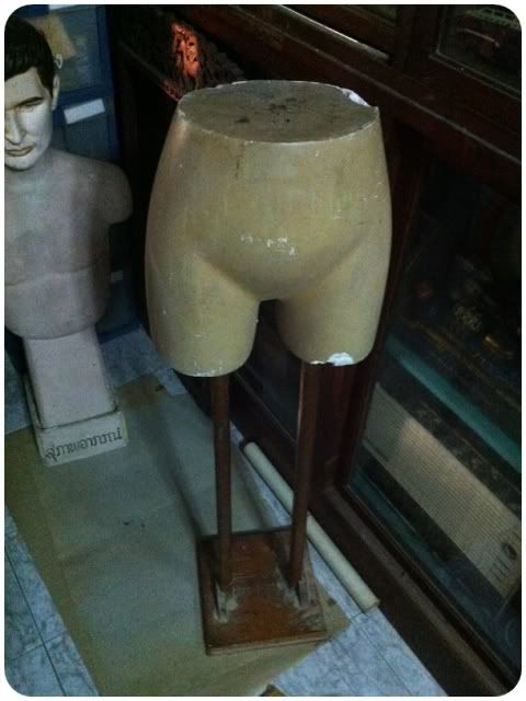 หุ่นปูนโชว์กางเกง ขาไม้สักเก่ากึก ผ่านเวลามานานมีร่องรอยบ้างแต่ยังได้อยู่ ส่วยปูนยกออกได้ ขาย 3500 ต้องมารับเอง