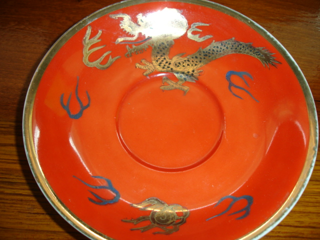 ( ลายมังกรที่จานรองเป็นลายนูน )