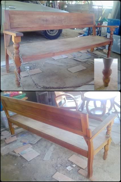 เก้าอี้ไม้สัก ยาวประมาณ 2 เมตร ขาขาวด้านหน้ามีตำหนิตามรูปค่ะ ปิดการขายค่ะ ค่าส่งตามจริงค่ะ