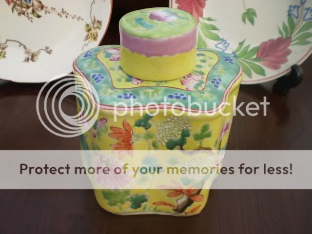 เป๋าเหลี่ยม กระเบื้องกูปี เขียนสี ลายมงคล (ค้างคาว-ต้นท้อ) โชคลาภ เงินทอง สมบูรณ์มาก สูง 5 นิ้ว