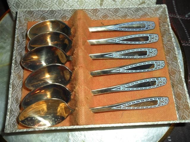 723. ช้อนทองเหลืองลงยา ความยาว 4.5 นิ้ว มาพร้อมกล่องเดิมๆ สภาพเก่าเก็บ ชุดนี้มี 6 คัน ขายราคา 380 บาท