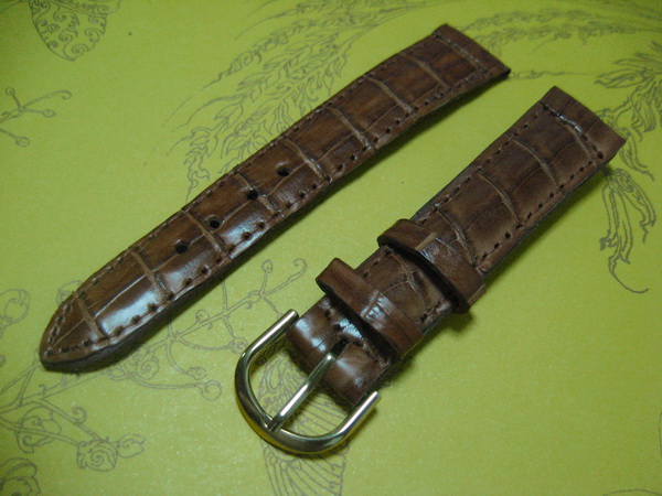 67.สายนาฬิกา หนังจระเข้ สีน้ำตาลเข้ม ลายสวย หัวทอง