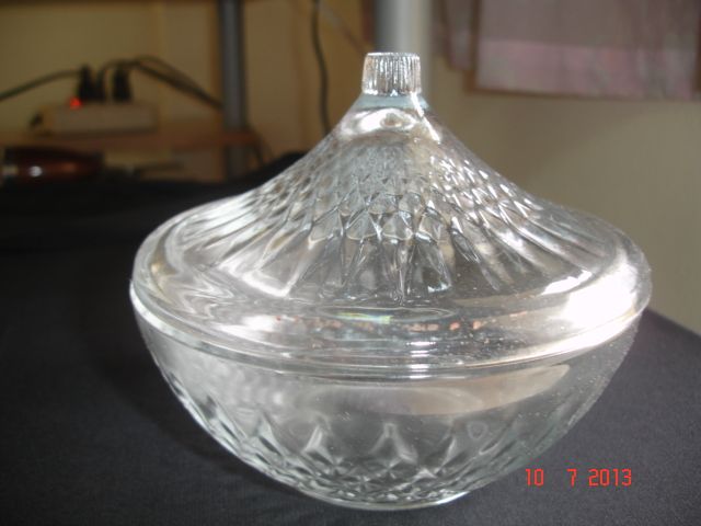 ถ้วยแก้วฝา ลายรอบตัว กว้าง 5 นิ้ว มีสองใบ ขายใบละ 100 ค่าส่ง 30 ขาย อ.ชไมพรค่ะ