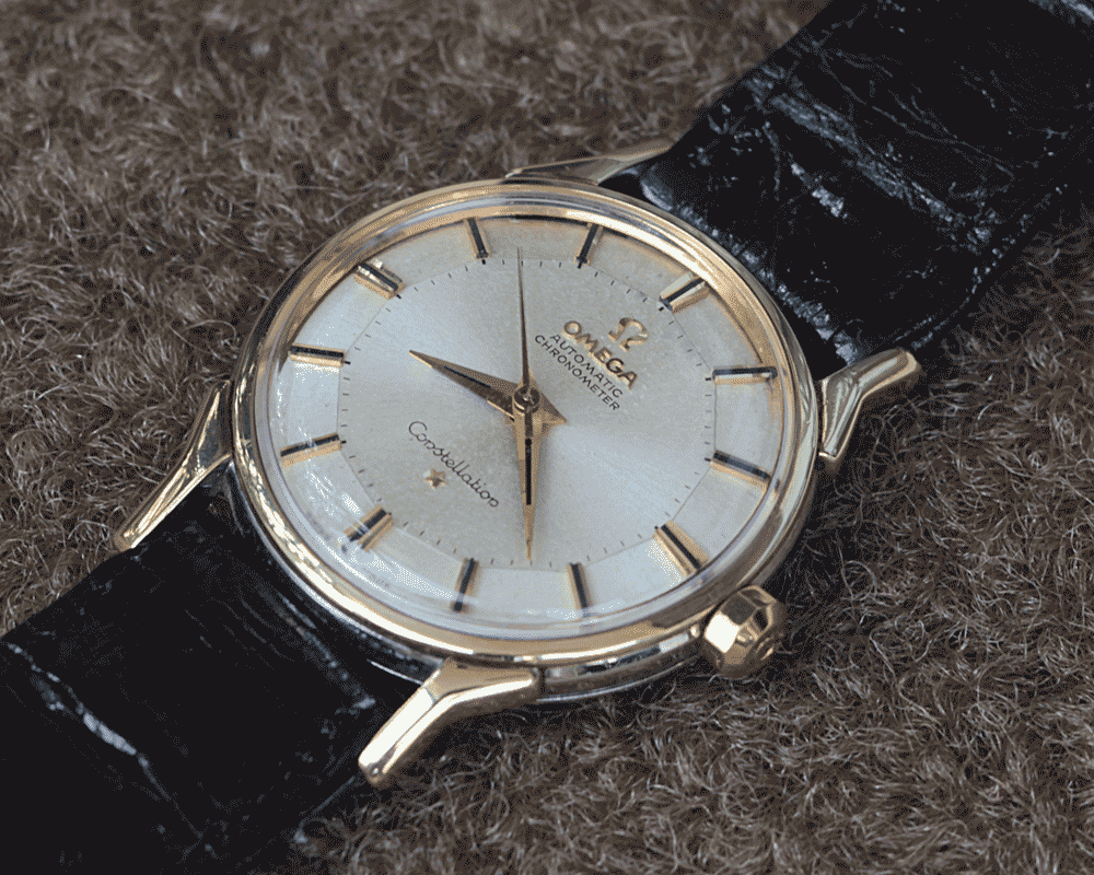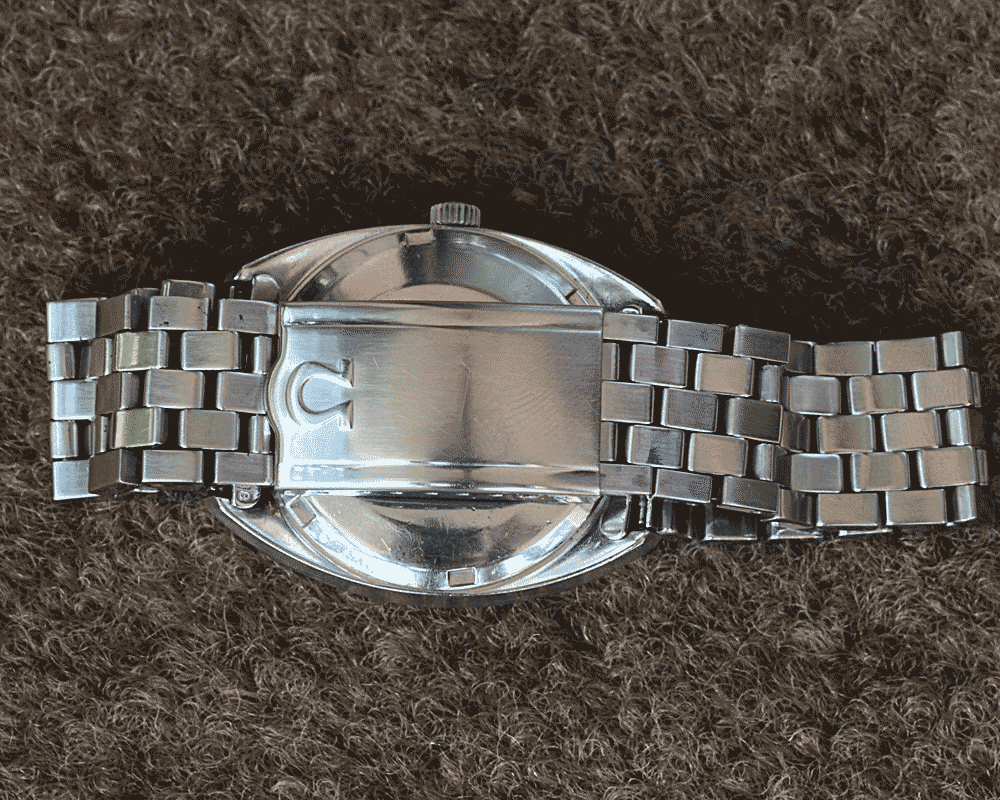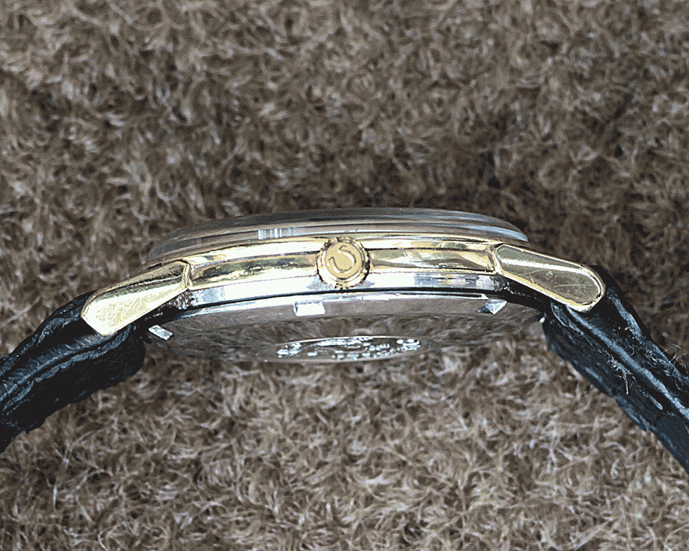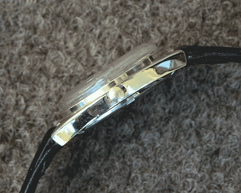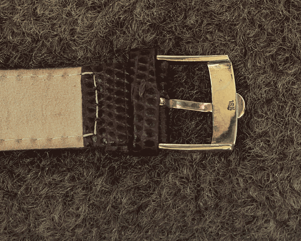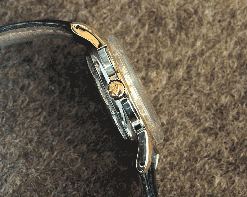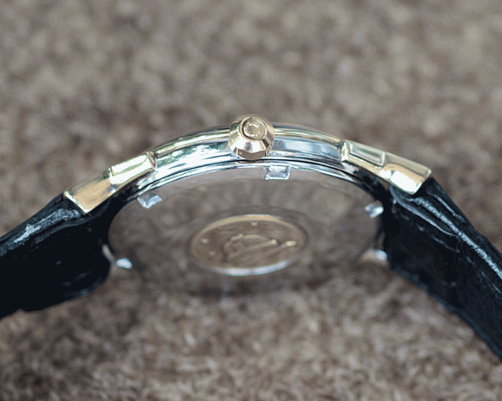 หน้าปัทม์สีเงินหลักเลขอารบิคทอง สายเดิมเข็มขัดเดิม